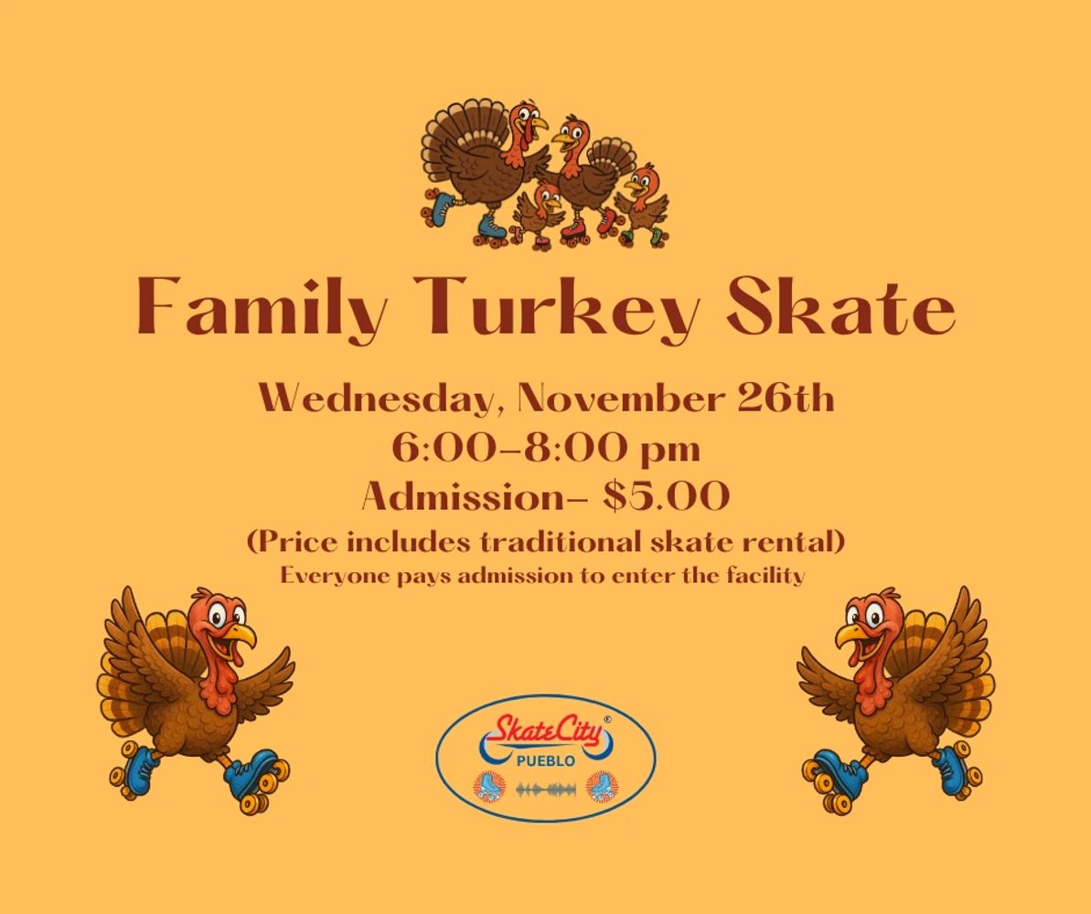 Wednesday, November 26th- 12-4 pm & 6-8 pm (Family Turkey Skate)