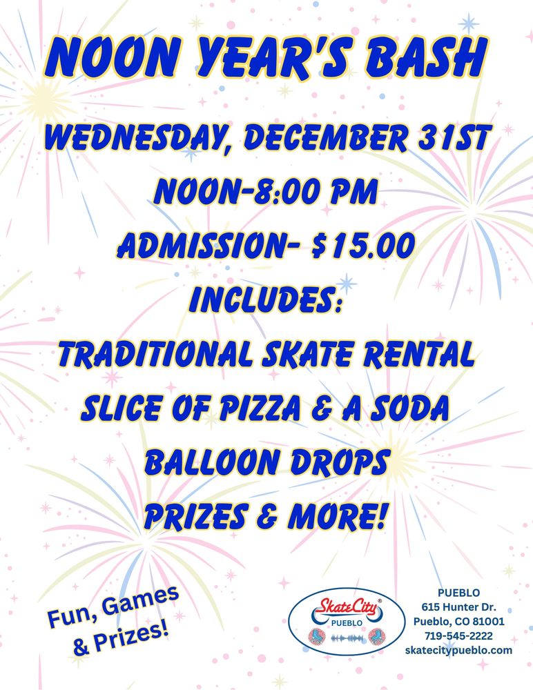 Wednesday, Dec. 31 12-8 pm (NOON YEAR'S BASH PARTY)